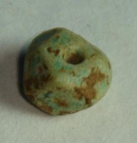 | Description / विवरण | Plain, small and multifaceted stone bead, irregular in shape, having perforation at centre with rough surface. Earthly incrustation all over the body. |