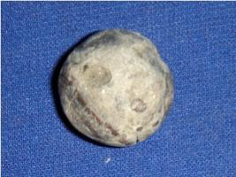 | Description / विवरण | Small terracotta ball having cracks all over. It has bicolour -brown and crimson probably used as a sling ball. |