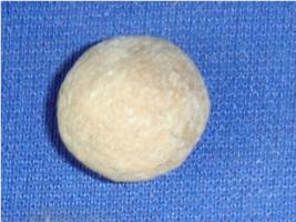 | Description / विवरण | Tiny terracotta sling ball, irregular in shape, crudely finished and ill fired. |
