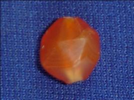 | Description / विवरण | Tiny multifaceted carnelian bead, orange in colour and a perforated hole in the centre. |