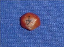 | Description / विवरण | Multifaceted carnelian stone bead with a perforated hole in the centre. |