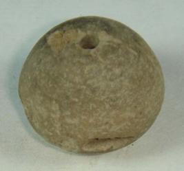 | Description / विवरण | Perforated terracotta bead, with conical body, oval base and depression at base in circular fashion. |