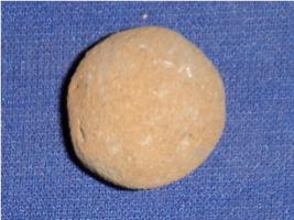 | Description / विवरण | Terracotta ball with smooth surface, spherical in shape, probably used as a sling ball. |