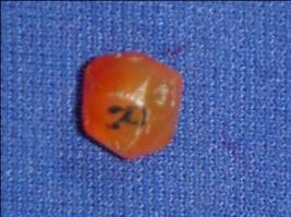 | Description / विवरण | Multifaceted carnelian stone bead with a perforated hole in the centre. |