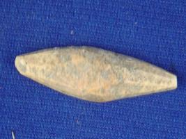 | Description / विवरण | Bone point with pointed ends and ridges on the circular body. |