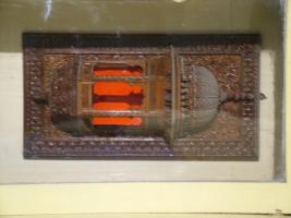 | Description / विवरण | Panel, wooden, carved with a projecting balcony supported on a bracket and with a semi-dome above. |