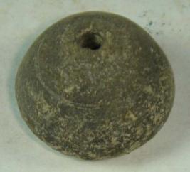 | Description / विवरण | Perforated, terracotta bead having betel nut body without any decoration. The base is slightly depressed near the hole in circular fashion, part of base is rubbed off. |