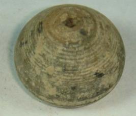 | Description / विवरण | Terracotta perforated bead, betel nut shape, depression at base, surface in smooth. |