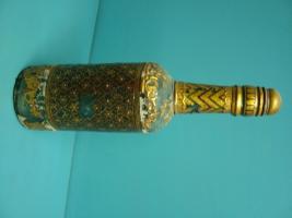 | Description / विवरण | Glass bottle, raised lacquer work gilt ornament on green ground. |
