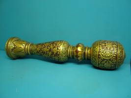 | Description / विवरण | A wooden bed leg, raised lacquer work. |