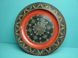 | Description / विवरण | A tray, circular, incised lacquer work in floral scrolls. |