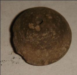| Description / विवरण | Perforated terracotta bead, having betel nut body and without any decoration. The body is broken near base. |