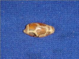 | Description / विवरण | Spindle shaped carnelian stone bead orange in colour with lines and with a perforated hole in the centre. |