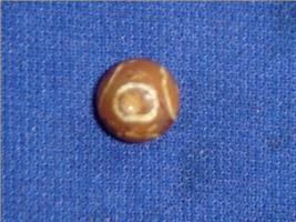 | Description / विवरण | Spherical carnelian stone bead with six faces marked by white lines to give it a hexagonal appearance. A perforated hole is seen in the centre. |