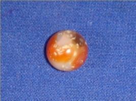 | Description / विवरण | Spherical carnelian stone bead with a perforated hole in the centre. |