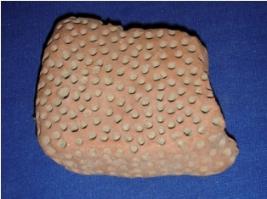 | Description / विवरण | Fragment of a terracotta scrubber rectangular in shape, having perforated designs. |
