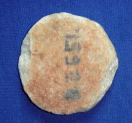 | Description / विवरण | Stone disc, flat and circular in shape with rough surfaces. |