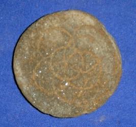 | Description / विवरण | Stone dice, flat and circular in shape, with convex body. On the obverse is the depiction of a full bloom incised flower design and on the reverse is the depiction of a lotus. |