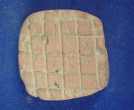 | Description / विवरण | Fragment of skin rubber having incised block designs on both faces. It is slightly mutilated. |