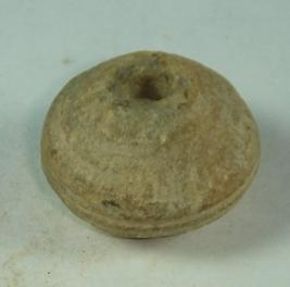| Description / विवरण | Perforated terracotta bead, pot shaped body, flat circular top and striation marks one seen an the body but mutilated. |