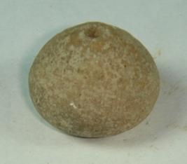 | Description / विवरण | Perforated terracotta bead, betel nut in shape, having rough surface, with shallow depression at base. |