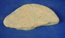 | Description / विवरण | Fragment of skin rubber , semi-circular in shape with a plain surface at one side while the other surface having incised diagonal line designs. |