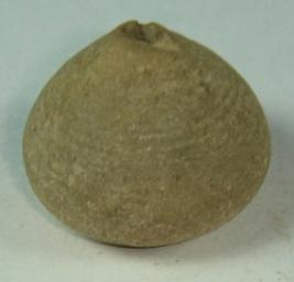 | Description / विवरण | Perforated terracotta bead, betel nut in shape shallow depression at the base, having mild striation marks near top. |