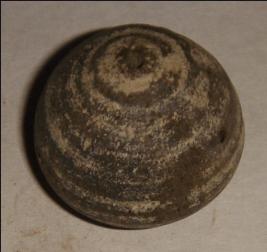 | Description / विवरण | Terracotta bead with pot shaped body, perforated and depression at the base and smooth surface. |