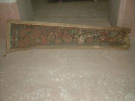 | Description / विवरण | Curtain, oil painted with Ajanta floral designs. Colourful, floral pattern. |