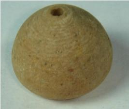 | Description / विवरण | Perforated terracotta bead, betel nut in shape, the body part is rubbed off. |