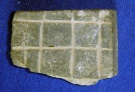 | Description / विवरण | Stone fragment rectangular in shape, having small incised block design at one side. Some blocks of this side is slightly flaked off. On the obverse surface broad incised blocks are seen, while the edges are plain at two sides and broken at other two sides. |