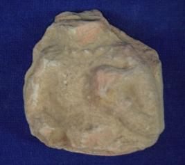 | Description / विवरण | Fragment of a terracotta Yaksha figurine, only the body below head upto hip is visible. The right hand is broken from wrist, and left hand is fisted over the left chest. Part of beaded necklace is seen. The fragment is almost mutilated. |