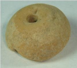 | Description / विवरण | Perforated terracotta bead, betel nut in shape, the base has slight depression. |