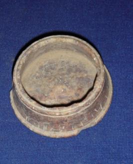 | Description / विवरण | Stone fragment, circular in shape, incised lines on the top rim and the base hollow from inside, probably part of box. |