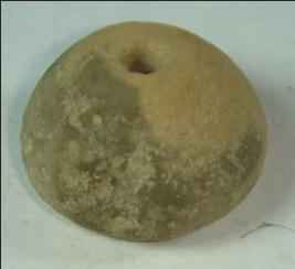 | Description / विवरण | Perforation terracotta bead, betel nut in shape, the base has slight depression. Clay incrustation all over |