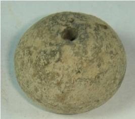| Description / विवरण | Perforated terracotta bead, betel nut in shape, having rough surface, slight depression at base, with striation marks all over. |