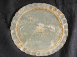 | Description / विवरण | Plate with flat base and ribbed patterns around the base, broad & flat rim, with Muradabadi work in floral patterns in Pink and golden colour over the black base. |