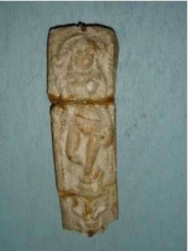 | Description / विवरण | Handle of a jar made of china clay on the body of which figure of a cross legged Yakshi standing on a weight uplifted by a weight bearer. The right hand of yakshi is raised upward while her left hand is lying parallel to her body. The handle is broken into three pieces but restored. |