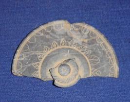 | Description / विवरण | Stone lid with broken knob, floral design and circular incised lines on the upper part while inner side with raised circle at the corner. |