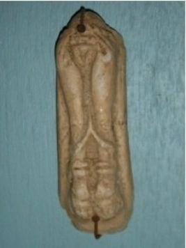 | Description / विवरण | Handle of a jar, made of china clay, on the body of which lower part of Female figure below waist is depicted. The upper part of the handle on which the upper part of the figure depicted is missing. She is wearing a transparent lower garment and anklets on her knee. |
