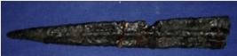 | Description / विवरण | Iron harpoon head with pointed tip and sharp edge. A ridge is visible in the centre. |