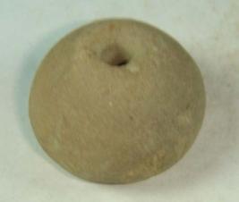 | Description / विवरण | Perforated terracotta bead, betel nut in shape, surface is rough. Clay incrustation all over. |