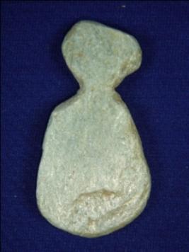 | Description / विवरण | Terracotta hanging of stone in bell shape, flat with shining surface, on the top of it depressions are visible probably to tie the string for hanging. |
