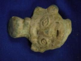 | Description / विवरण | Head of a terracotta human figurine, the body below neck is missing. Its nose and ears are prominent and eyes and mouth are made with incised lines. Hair is tied into a knot with a hair band. |