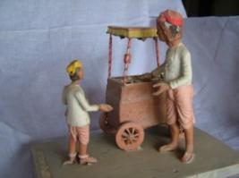 | Description / विवरण | The terracotta model is made on a wooden platform which shows a villager selling his corns. There is a two wheeled cart with a heap of corns flowing on the ground out of it and the villager is seated near it weighing his corn with a pair of scales. He is wearing a turban, tunic and a lion cloth. Model is based on a pedestal. |