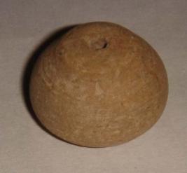| Description / विवरण | Perforated terracotta bead, betel nut shaped, depression at the centre, striation marks at the centre. |