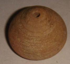| Description / विवरण | Perforated terracotta bead, betel nut shaped, flat base, striation marks all over. |