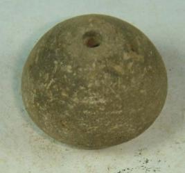 | Description / विवरण | Perforated terracotta bead with deep depression at the base, betel nut in shape having rough surface. |