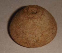| Description / विवरण | Perforated terracotta bead, betel nut shape, flat base, clay incrustation all over. |