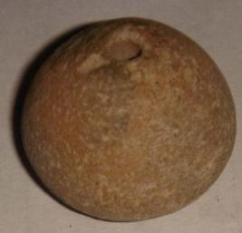 | Description / विवरण | Perforated terracotta bead, betel nut in shape, striation marks on the body, surface is rough. |